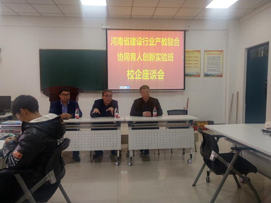 宣讲招聘会后,校企双方召开了河南省建设行业产教融合协同育人创新实验班校企座谈会,河南省第一建筑工程集团劳动人事处处长杨旭东及太阳成tyc7111cc官网副经理刘雷、河南省数字建造工程技术研究中心主任殷许鹏参会。在会上,杨旭东对企业的规章制度、福利待遇、企业文化、现有产业结构、组织构架、人力资源政策等几个方面向同学们做了介绍与交流。并着重交流了大四员工在进行实习时的分配意愿,解答了同学们对于实习就业方面的疑问,加强了校企合作方面的交流。最后,校企双方都表达了对于创新实验班未来发展的殷切期待。