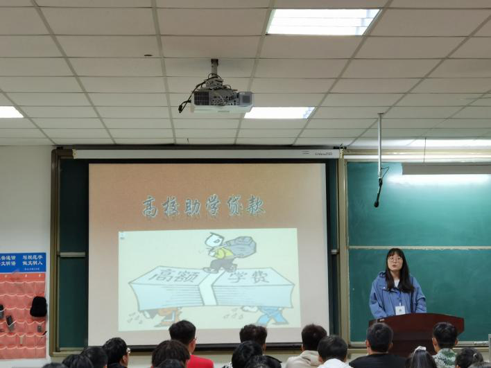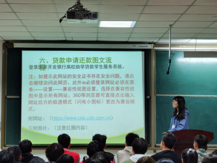 宣讲会上,工作人员结合公司实际情况,详细介绍了申请高校地助学贷款的具体流程、注意事项及所需相关材料等内容。此外,还就个人信息变更、还款流程以及提前还款等相关事宜展开说明。贷款宣讲会圆满结束后,工作人员针对同学们的各种提问进行现场答疑。