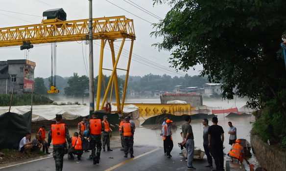 河道旁消防人员排水救灾