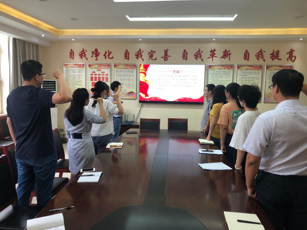 首先,支部书记袁珮通报了本月党费缴纳情况,支部全体党员均按时、足额完成了党费缴纳。其次,由郭伟同志领读入党誓词,全体党员起立,面向党旗,庄严宣誓。再次,由支部书记袁珮为大家讲解党建专题知识。最后,全体党员观看党建相关视频。