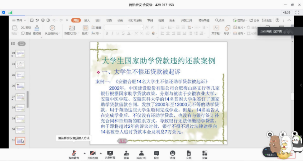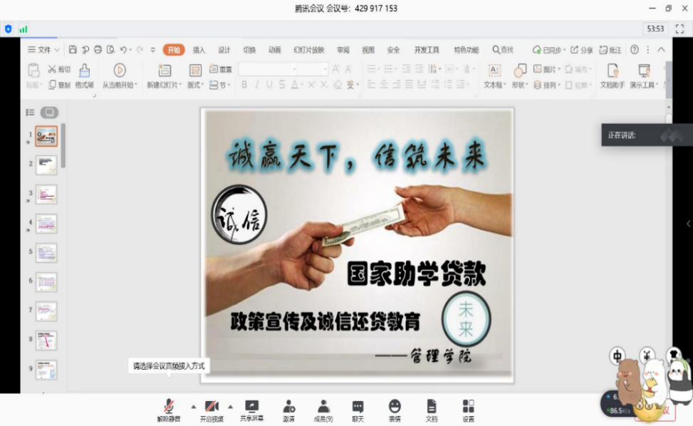 (通讯员:赵建飞赵梦圆)为了培养老员工的诚信意识,增强老员工的诚信观念,加大国家助学贷款政策宣传力度,推动助学贷款工作持续健康发展,公司于2020年5月18日采用“云宣讲”的方式在腾讯会议上召开“国家助学贷款政策宣传及诚信还贷教育”宣讲会。