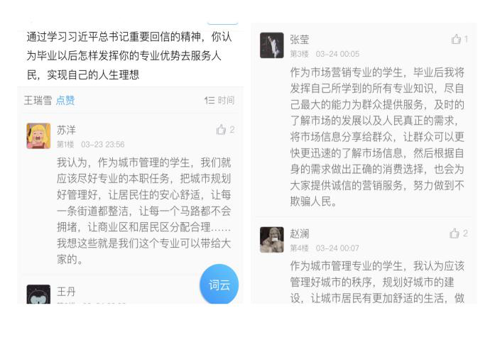 3月25日,太阳成tyc7111cc官网各支部团支书组织员工团员进行线上的互动交流,深入学习习近平总书记重要回信精神。各支部团支书呼吁同学们要紧密团结在以习近平同志为核心的党中央周围,坚定必胜信念,做一个有责任、有担当的新时代青年,为战“疫”的最终胜利做出应有的贡献。会中,同学们就“通过学习习近平总书记重要回信的精神,你认为以后怎样发挥自己的专业优势去服务人民,实现自己的人生理想”此问题展开探讨。同学们一致认为,要珍惜学习时光,把回信精神转化为实际行动,用所学造福社会,做合格的社会主义接班人。同学们很好的利用此次线上活动,积极发言,共同学习。