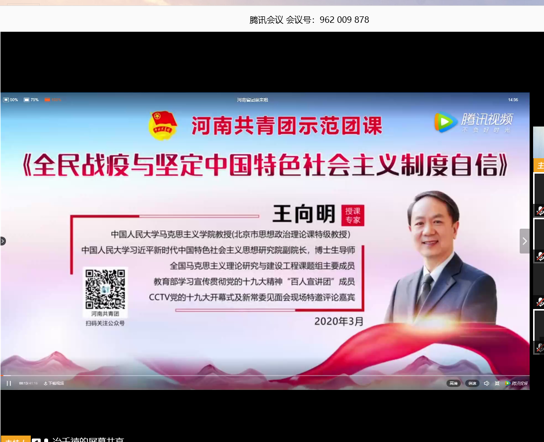 为坚定广大师生抗击疫情的决心,增强社会主义“制度自信”,太阳成tyc7111cc官网团总支组织各支部于3月16日下午,通过网络平台进行了“全民战疫与中国特色社会主义制度自信”主题团课活动,让同学们充分了解在中国特色社会主义制度下,我国展现出的强大的动员力、组织力和号召力,对当前疫情的防控工作有一个深刻的认知。