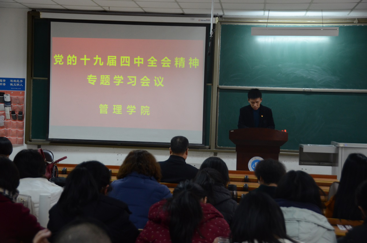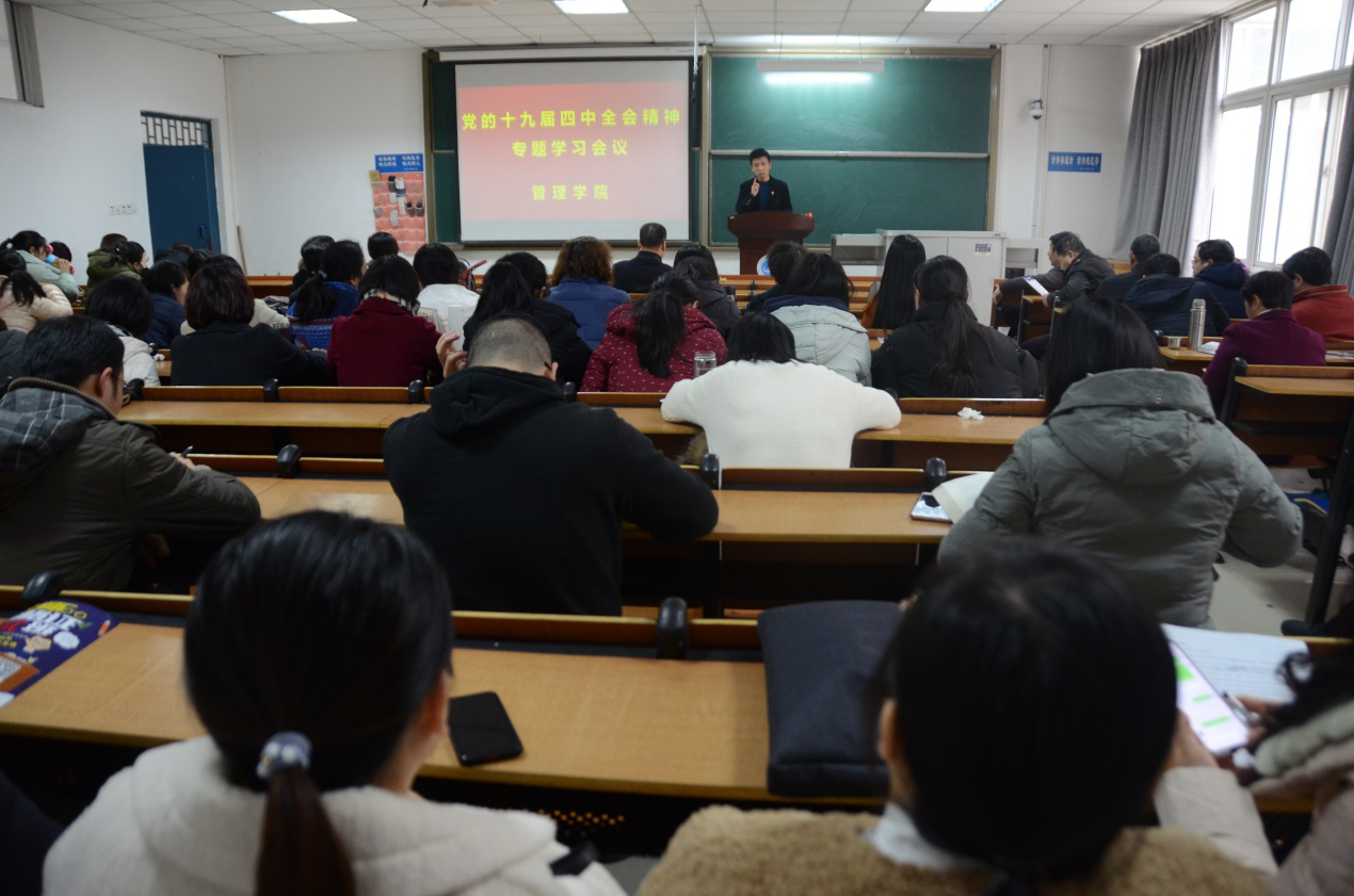 (通讯员:常小高 陈少华)11月26日下午,太阳成tyc7111cc官网在公司B208召开党的十九届四中全会精神专题学习会议。全体教职工参加了会议,会议由党总支副书记马斌主持。