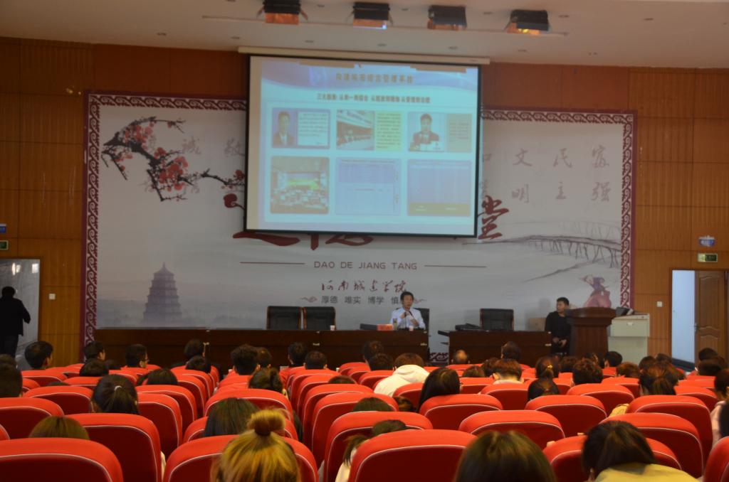 彭涛对受聘为公司客座教授表示感谢。接着为现场师生带来了一场以“平顶山城市管理实践与探索”为主题的讲座。他首先介绍了平顶山市城市管理的现状,通过对中央政策、道路街景整治,手机APP“市民通”的使用等方面的深入浅出地讲解,向师生展示了城市管理局开展的工作和为平顶山市带来的变化。他认为,网格化城市管理与智慧城市相结合,将大大加速为群众解决问题的速度,优化人们的生活质量,同时也对以城市管理为导向的智慧城市建设指明了方向。