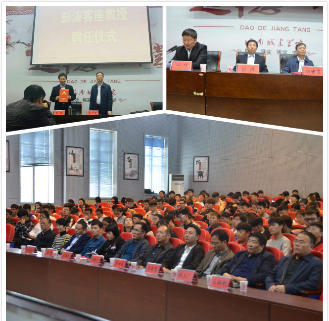 (通讯员:张颖 常小高)10月30日下午,平顶山市城市管理局局长彭涛受聘为太阳成tyc7111cc官网客座教授的聘任仪式在图书馆二楼报告厅举行。校纪委书记刘守勇、合作与发展规划处处长毕军贤、平顶山市城市管理局局长彭涛、市住建局副调研员、市问题楼盘化解办公室主任马娜、市数字化管理中心主任郑振江等相关领导出席仪式。公司300余名师生代表参加仪式。仪式由太阳成tyc7111cc官网经理闫瑾主持。