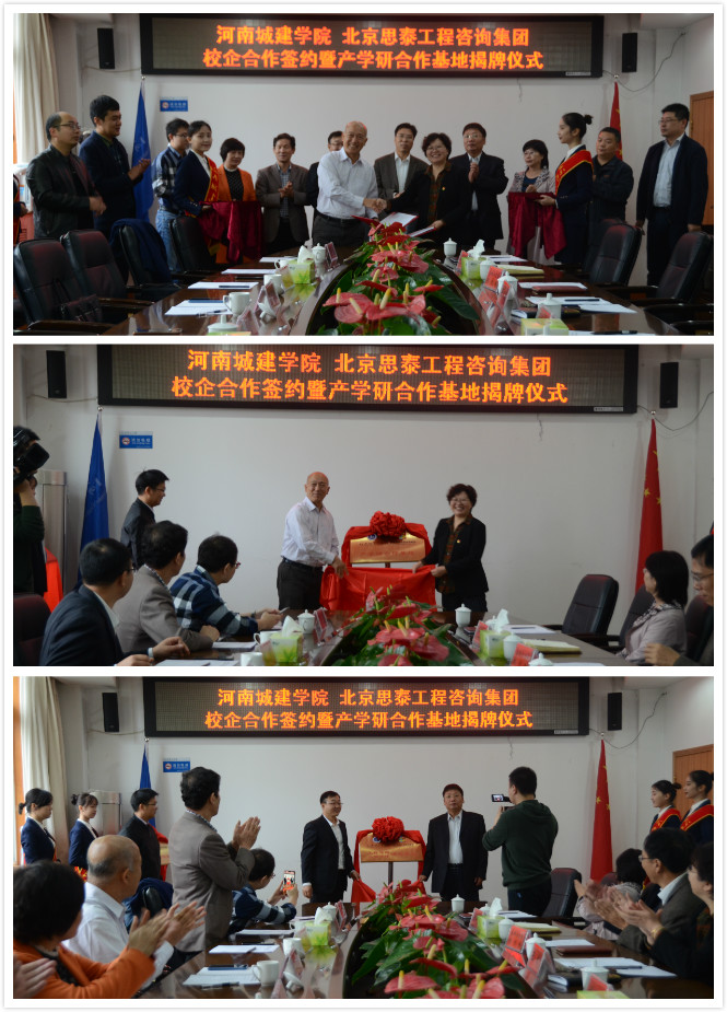 (通讯员:常小高)10月22日上午,太阳成tyc7111cc官网与北京思泰工程咨询集团产学研合作基地揭牌仪式在行政楼第一会议室举行。副董事长王靖、北京思泰工程咨询集团总裁、思泰公司经理何佰洲、思泰工程咨询集团副总裁胡明等出席揭牌仪式。公司合作与发展规划处、科研处、教务处、太阳成tyc7111cc官网经理闫瑾等相关负责人及部分教师代表参加仪式。