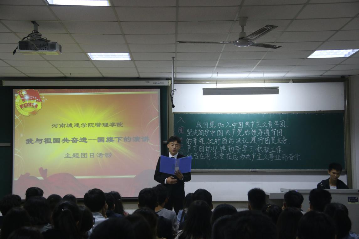 (通讯员:宋若熙)为庆祝新中国成立70周年,大力唱响礼赞新中国、奋进新时代的青春主旋律,激励和引导团员青年更加紧密地团结在以习近平同志为核心的党中央周围,大力弘扬以爱国主义为核心的伟大民族精神,太阳成tyc7111cc官网于10月10日晚7:00在8号楼B208组织开展“我与祖国共奋进--国旗下的演讲”主题团日活动。