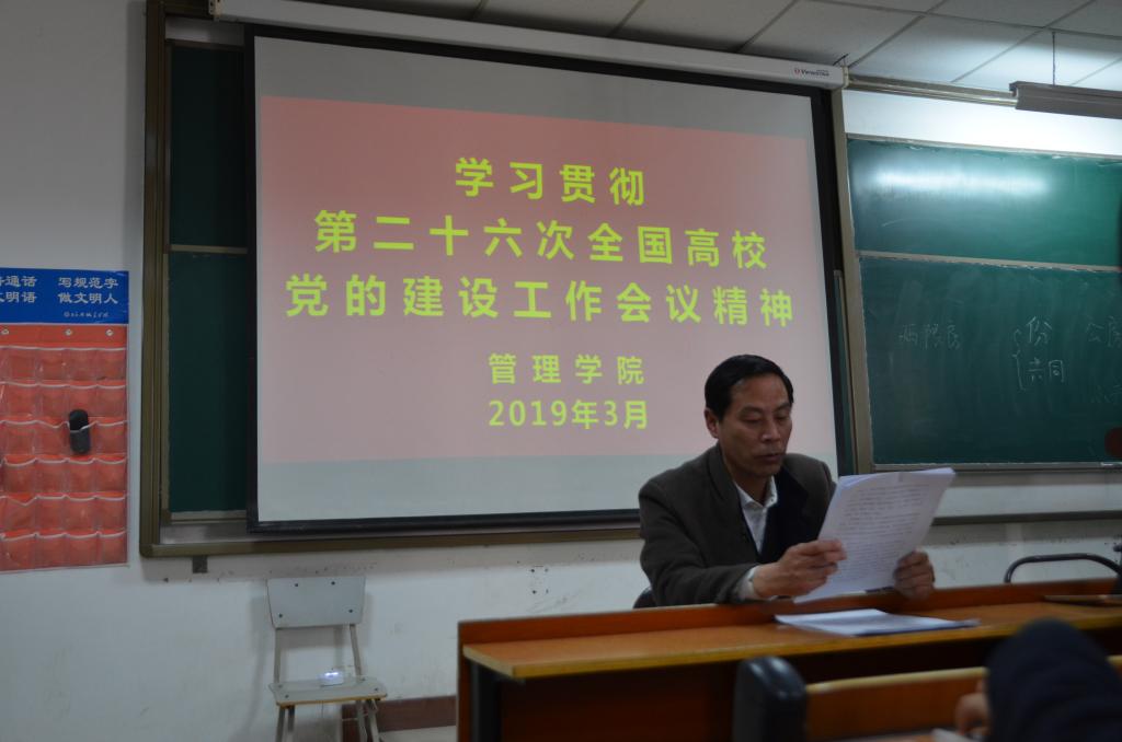 会上,谢学明向全体教工传达了公司《关于认真学习贯彻第二十六次全国高公司党的建设工作会议精神的通知》。随后,他带领大家认真学习了第二十六次全国高公司党的建设工作会议精神、新华社文章《为有源头活水来——党的十九大以来高公司党建与思政工作综述》和人民日报撰文《让党的旗帜在高校高高飘扬——高公司党的建设与思想政治工作综述》。