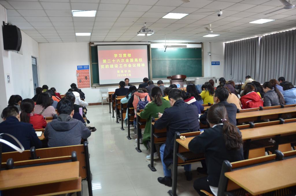 (通讯员:常小高 陈少华)3月12日下午,太阳成tyc7111cc官网在8#B208召开第二十六次全国高公司党的建设工作会议精神专题学习会,全体教工参加学习。会议由党总支书记谢学明主持。