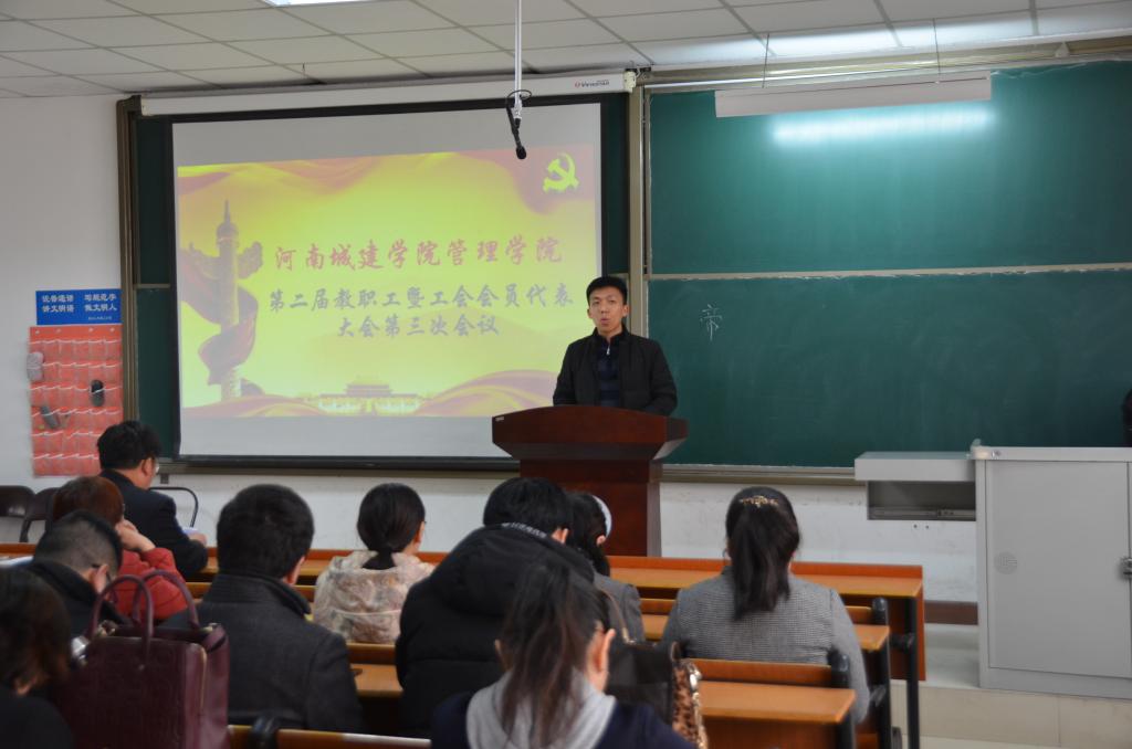 (通讯员:常小高)2月26日下午,太阳成tyc7111cc官网在8#B208召开第二届教职工暨工会会员代表大会第三次会议,会议审议通过了经理闫瑾所作的行政工作报告。全院教职工参加会议,会议由党总支副书记马斌主持。