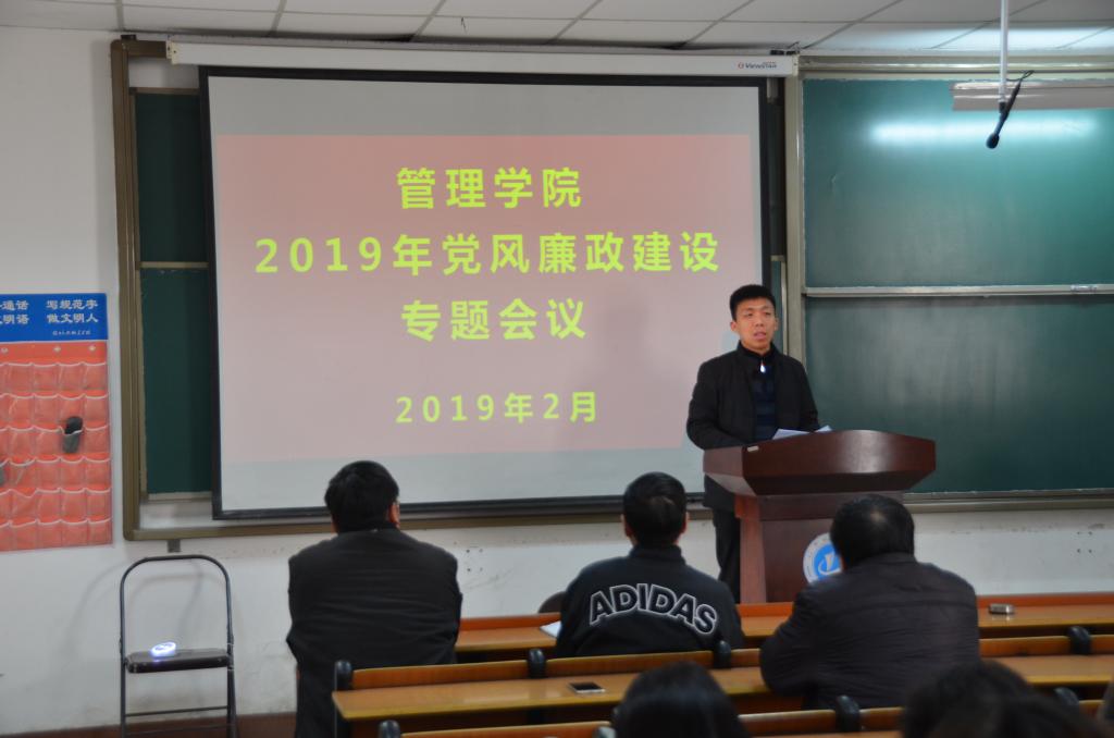 (通讯员:常小高)2月24日上午,太阳成tyc7111cc官网在8#B208召开2019年党风廉政建设专题会议,安排部署本年度党风廉政建设工作。全体党员教师参加会议,会议由党总支副书记马斌主持。