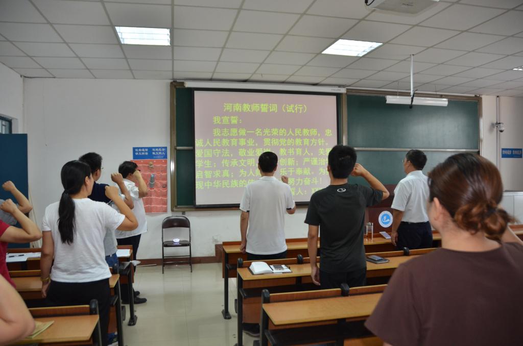三尺讲台存日月,一支粉笔写春秋。学习讲话后,副经理祖立厂带领领导班子成员和全体教师进行宣誓,重温《河南教师誓词》。他表示,做员工创新思维的引路人,做员工奉献祖国的引路人,做员工锤炼品格的引路人,做员工学习知识的引路人,坚持教师恒久的追求不动摇。希望通过此次宣誓活动,使全体教职工进一步坚定理想信念,加强师德修养,严谨笃学,勤思善教,潜心钻研,以广博学识和宽阔视野,提高教书育人的本领,做好员工的引路人。