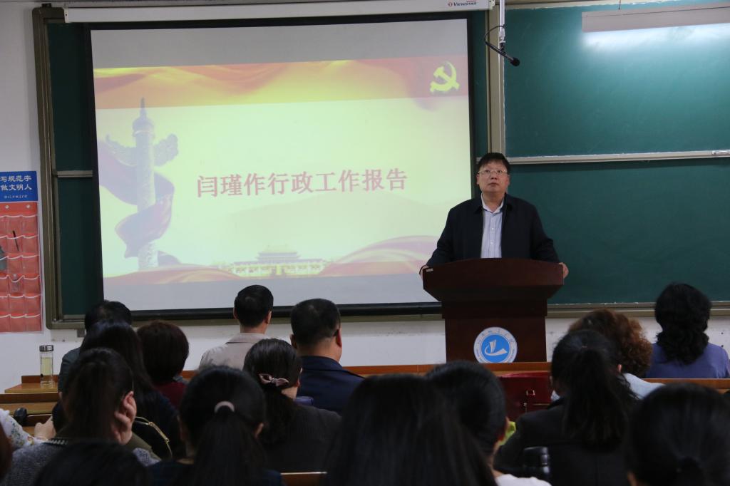 大会在雄浑的国歌声中开始。首先由闫瑾作行政工作报告。他回顾了公司2017年在各项工作中取得的丰硕成果。他指出,2017年公司党建和思想政治工作扎实开展,教学工作和改革稳步推进,科研和实验室成果显著,员工管理工作成绩突出。此外,他还对公司去年的财务收支情况作了报告。