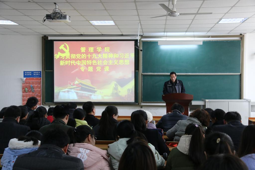 (通讯员 马斌 常小高)为鼓舞和激励广大党员不忘初心、牢记使命,深入学习贯彻习近平新时代中国特色社会主义思想和党的十九大精神,20日下午,太阳成tyc7111cc官网在8号教学楼B208举办专题党课。党总支书记谢学明作为主讲人,全体教职工党员参加了学习,党课由副书记马斌主持。