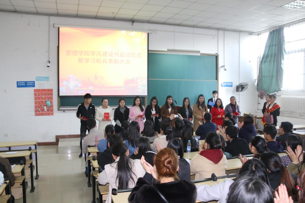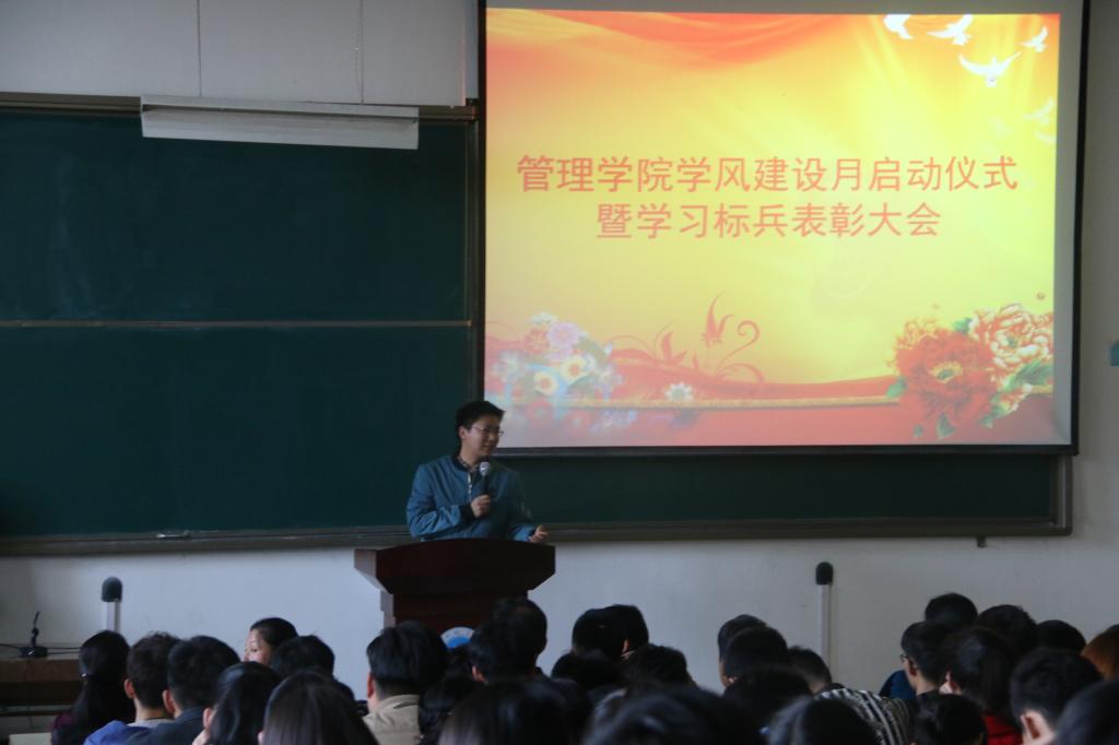 (通讯员:李玲慧)为进一步加强学风建设,激发同学们学习的积极性和主动性, 3月14日下午,太阳成tyc7111cc官网学风建设月系列活动之——学风建设月启动仪式暨学习标兵表彰大会在八号楼B109、B110如期举行,出席本次大会的嘉宾有太阳成tyc7111cc官网副经理祖立厂、副书记马斌、房地产教研室、营销教研室的各位老师。
