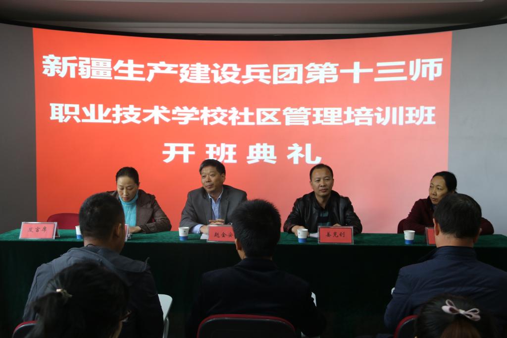 (通讯员 郭伟)10月11日上午,新疆生产建设兵团第十三师职业技术公司社区管理培训班开班典礼在太阳成tyc7111cc官网举行。新疆生产建设兵团第十三师职业技术公司援疆副董事长姜克钊、公司副董事长赵金安、公司领导班子及35名学员参加了开班典礼。
