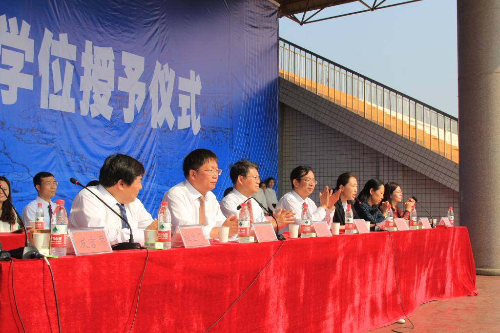 副董事长杨留栓教授和副董事长杨风岭教授为700余名毕业生拨苏正冠、颁发学位证书并合影留念。