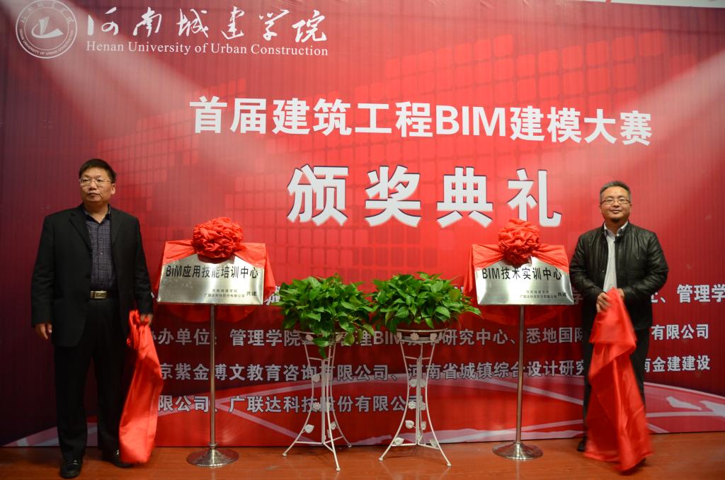 颁奖典礼后,太阳成tyc7111cc官网与广联达科技股份有限公司举行了共建“BIM应用技能培训中心”和“BIM技术实训中心”的揭牌仪式。
