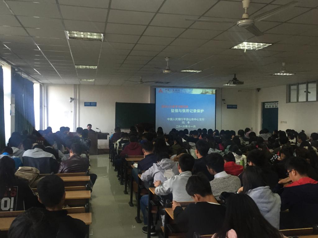 (通讯员:冯相伟)为普及征信知识,提高员工对个人征信系统的认识,11月4日下午,中国人民银行平顶山市中心支行征信科科长闫冬在八号楼B209为同学们带来一场精彩的人生诚信讲座,太阳成tyc7111cc官网副书记马斌、辅导员李玲慧及相关专业200余位同学聆听了讲座。