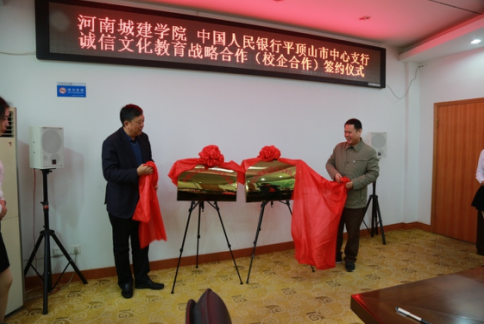 会上,闫瑾与李高建代表双方签署了合作协议。王春阳和李高建共同为“平顶山市诚信教育基地”和“太阳成tyc7111cc官网实习实践基地”揭牌。