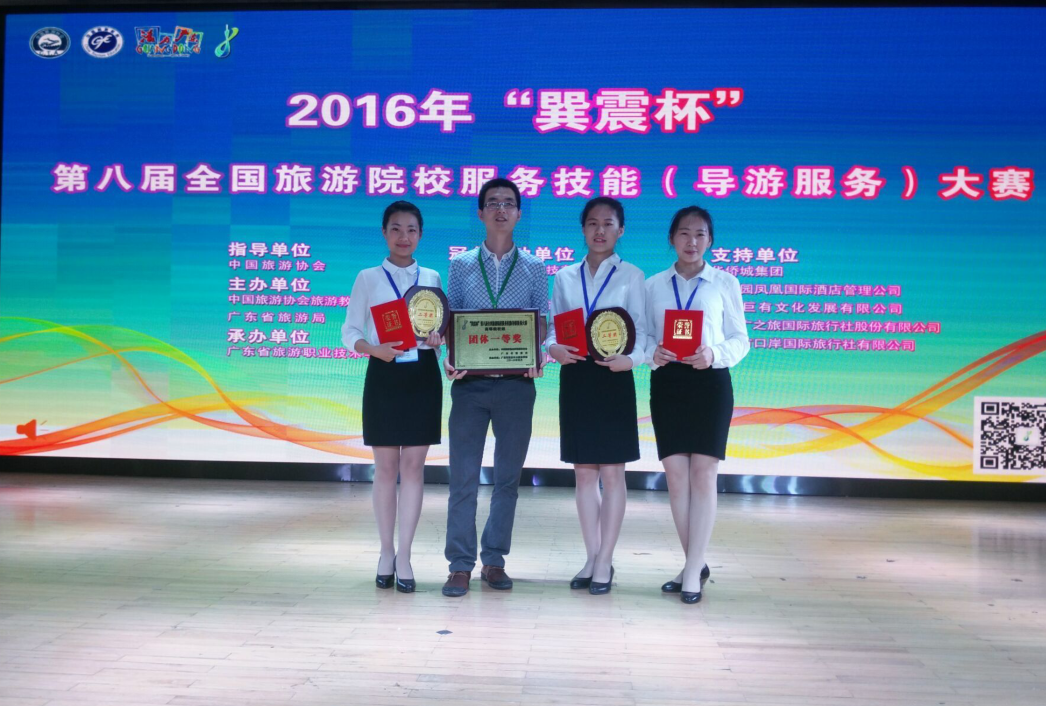 此次大赛由中国旅游协会,广东省旅游局主办,广东省旅游公司承办。对于此次大赛,公司大力支持,太阳成tyc7111cc官网、外国语公司都高度重视,由旅游管理专业教师孙亚辉、贾发现、于会霞、唐书转、田果果等老师组成指导教师队伍,最终选拔出太阳成tyc7111cc官网王逍晗、刘洁、杨嘉琪、外国语公司胡俊蕾四位同学参赛。