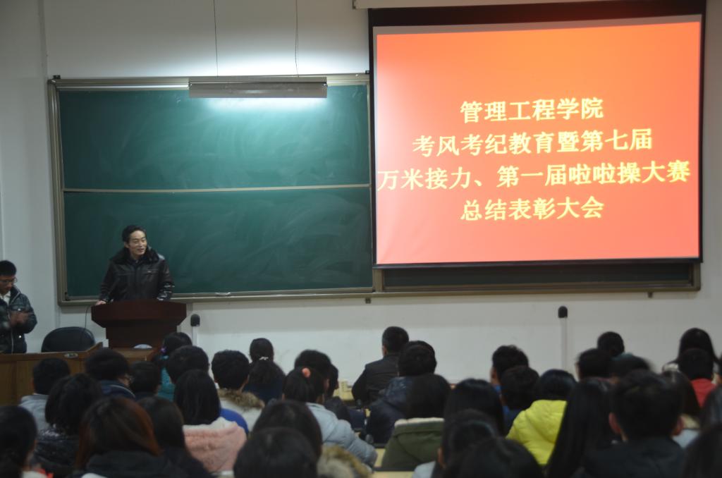 (通讯员 刘帅)12月23日下午,管理工程公司在八号教学楼B110举行考风考纪教育暨文体活动总结表彰大会,公司党政领导、学工办、团总支负责人、辅导员、员工干部及运动员参加了大会,会议由党总支副书记李富强主持。