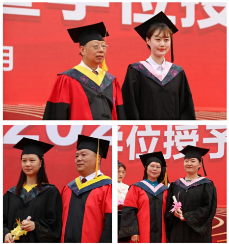 典礼在庄严的国歌声中拉开帷幕,首先由王宏宣读太阳成tyc7111cc官网关于表彰“2021届优秀应届毕业生”和“优秀毕业生党员”的决定。在轻快的音乐中,杨璐、刘雷为2021届优秀毕业生代表、优秀毕业生党员颁发证书。王炳刚宣读了2021届取得学士学位毕业生名单。随后,由周颖杰、张大力、王宏为2021届毕业生正冠拨穗,颁发学位证书并合影留念。
