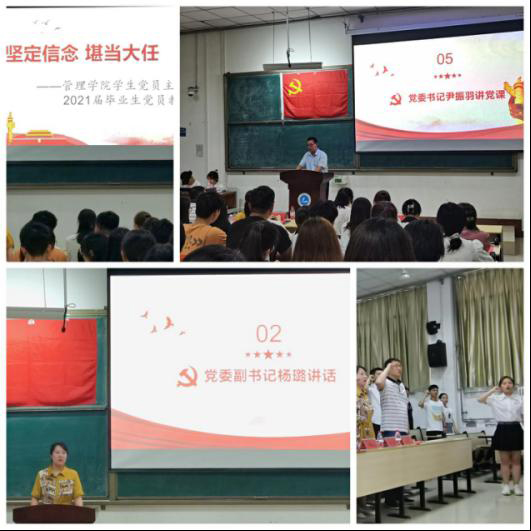 大会在雄壮的国歌声中拉开序幕,尹振羽给在场毕业生党员们上了最后一节大学党课,主要围绕《中国共产党章程》中规定的党员义务对所有毕业生党员提出要求,在生活中要理论与实践相结合,密切联系群众;在工作中应时刻牢记党员身份,明确党员责任义务。杨璐宣读了《中共太阳成tyc7111cc官网委员会关于批准于艺迎等889名同志为中共预备党员的通知》并对新入党的同学表示祝贺,希望她们在今后的学习生活中牢记党员身份,积极发挥模范表率作用。接着在石一涵领誓下,与会党员庄严地举起右手,面向党旗,共同重温入党誓词,表达了为共产主义事业奋斗终身的理想和信念。