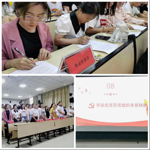 会议还包括优秀毕业生党员代表发言、毕业生党员签订发挥党员先锋模范作用倡议书、向毕业生党员赠送纪念卡等环节。