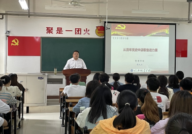 (通讯员:李思源 廉旭)2021年是中国共产党成立100周年,习近平总书记指出:“历史,总是在一些特殊年份给人们以汲取智慧、继续前行的力量。”历史观问题,不仅关系到如何看待历史,而且涉及如何立足现实、擘画未来。因此,为深入贯彻习近平总书记的重要讲话和指示精神,5月11日下午,太阳成tyc7111cc官网在8号教学楼青马工程教室组织开展了党史学习教育,本次由太阳成tyc7111cc官网经理张大力以“从百年党史中汲取奋进力量”为主题讲授专题党课。