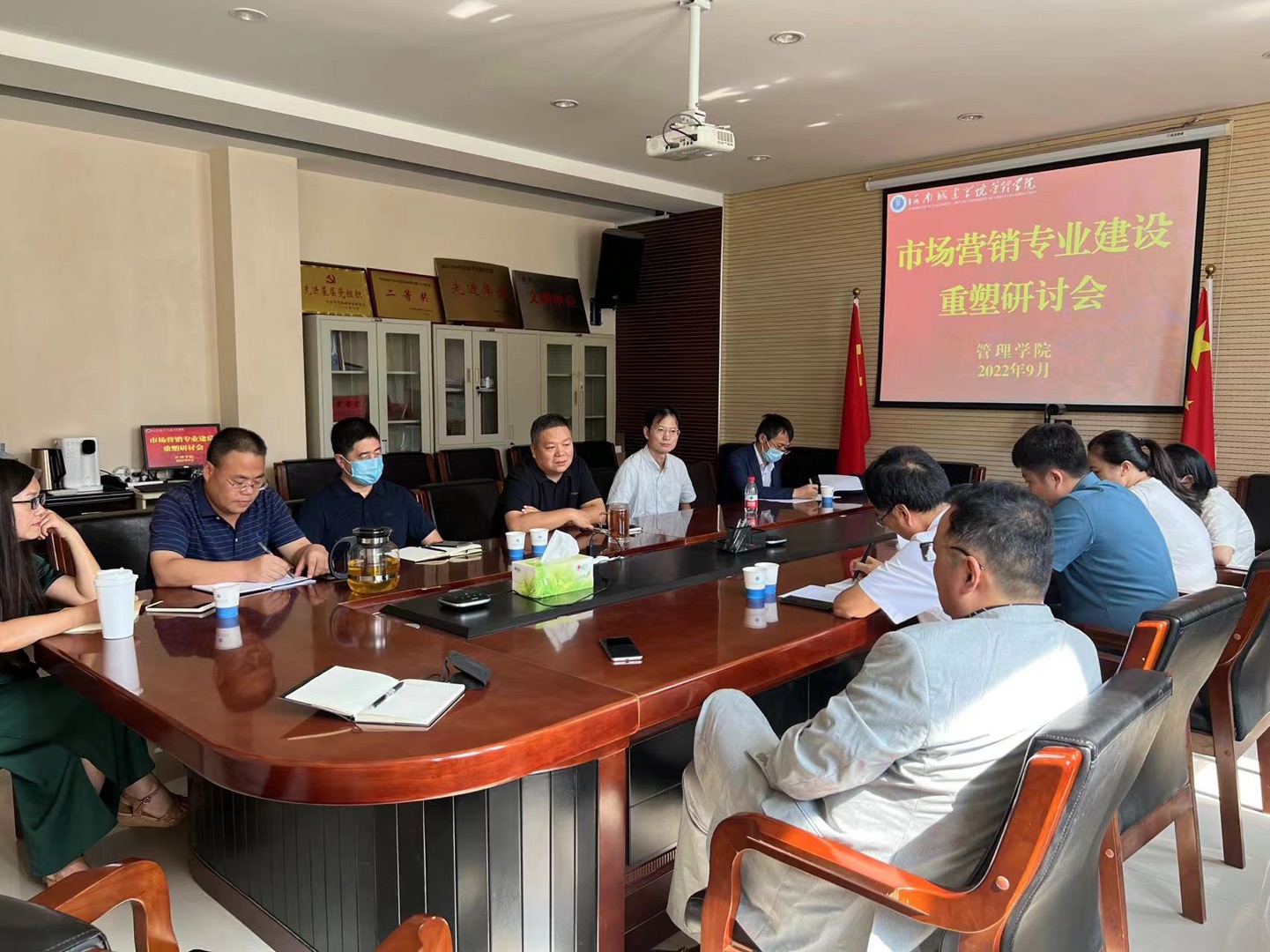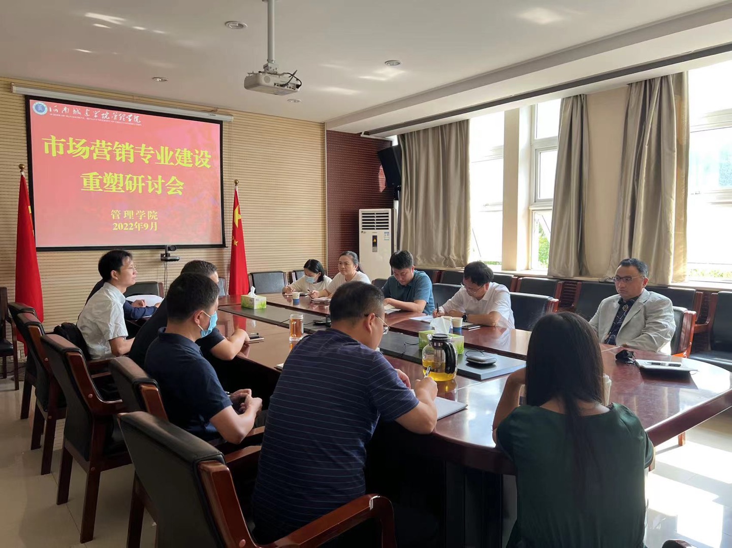 毕军贤和参会人员对市场营销专业的优势、劣势、发展机会及威胁做了分析,从不同角度深入交流了意见和看法。毕军贤对目前面临的机遇和挑战进行分析,希望青年教师牢记“为党育人、为国育才”的初心和使命,坚定理想信念,珍惜教师这份光荣职业,做员工的良师益友,树立“热心从教、勇挑大任”的信心和担当,为公司和公司各项事业发展贡献自己的力量,培养出更多应用型人才。