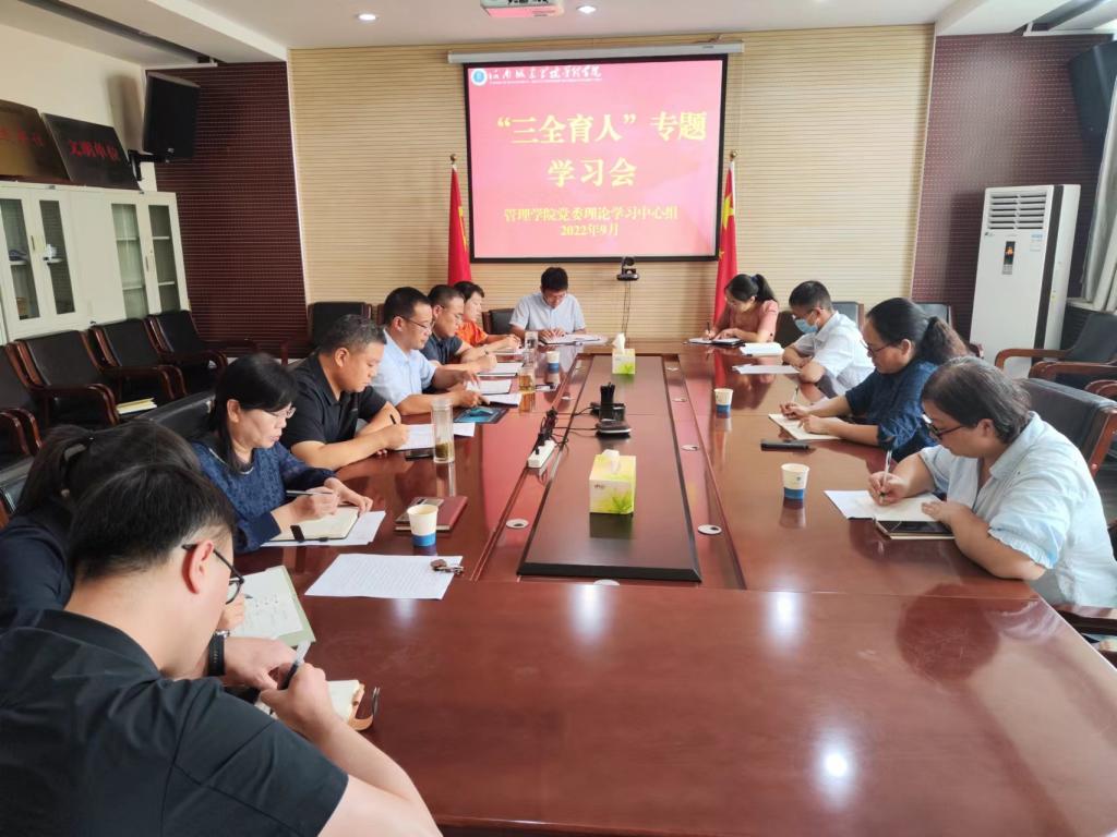 (通讯员 赵建飞)9月13日上午,公司党委理论学习中心组在八号楼三楼会议室召开“三全育人”集中学习研讨会,专题学习习近平总书记重要教育思想和“三全育人”理论体系。校督导组组长、公司党委委员、党委组织部部长白燕、党委统战部副部长袁小琨参会督导,公司领导班子成员、各党支部书记参加会议。会议由公司党委副书记杨璐主持。