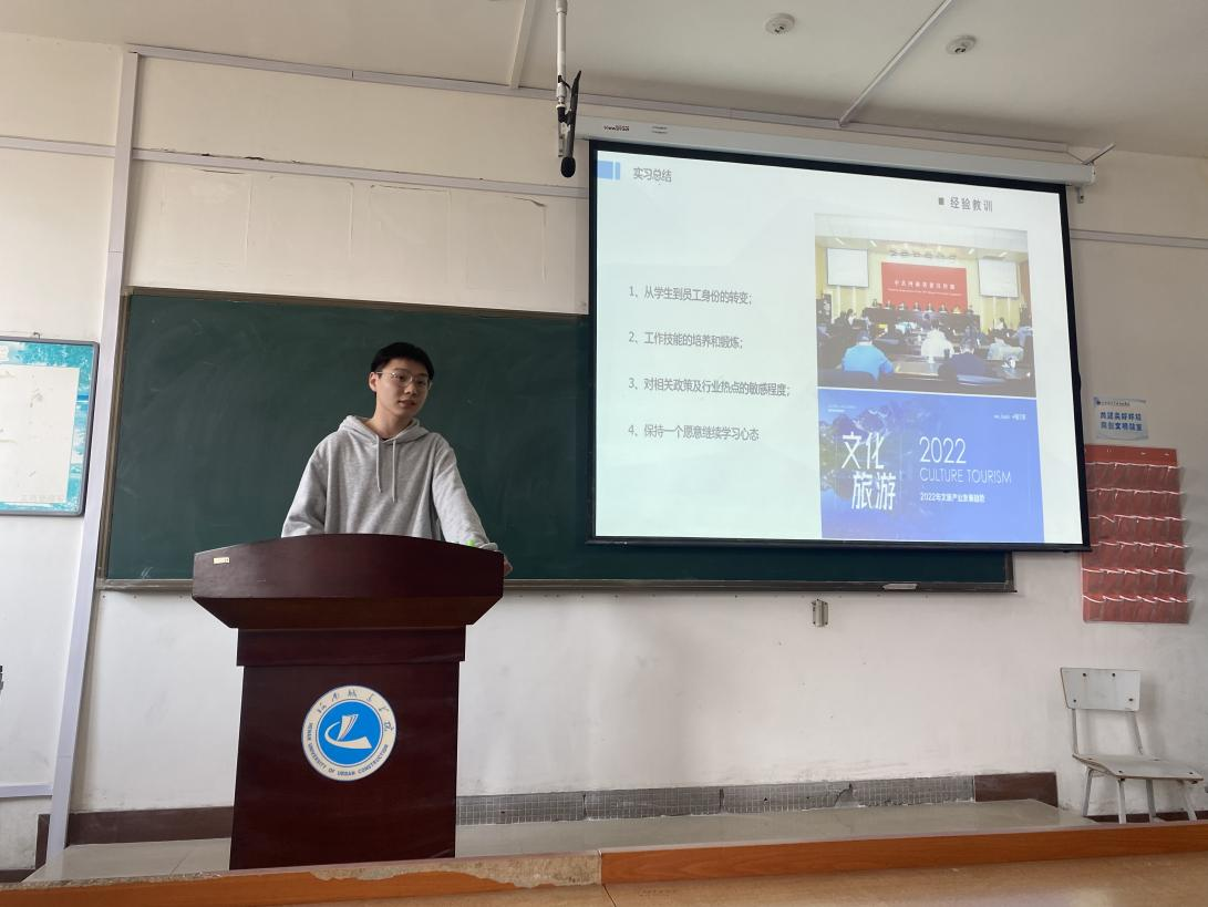 表彰会后,同学们针对本次实习进行答辩,依次上台进行实习阐述,讲述实习经历和心得,全面的展示了自己参与实习后在自信、专业能力、语言表达、职业素养等方面的变化与提升。答辩过程中,对于同学们在实习过程中所展现的城建公司旅游人的风采和当代优秀老员工的风貌,现场老师们给予了高度赞扬,并对员工今后的就业指明了方向,提出了期盼。