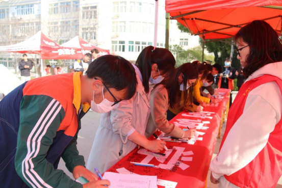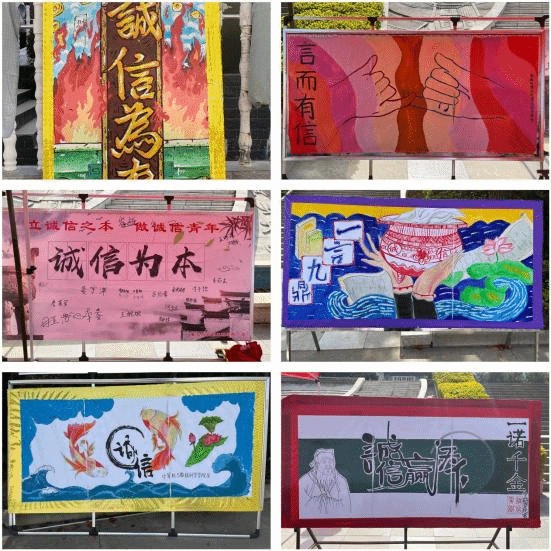 活动开始前,王宏讲述了开展此次诚信教育活动的意义,向大家宣讲了诚信的内涵,号召全体师生守住诚信的真谛,让诚信之花绚丽绽放。活动中,志愿者们将主题展板一一展出,展板内容引用诗词佳画,结合党的二十大精神,全面、巧妙地阐释了诚信教育在当代社会的意义。随后进行签名活动,志愿者们拉开了以“创诚信校园,树诚信学风,做诚信学子”为主题的横幅,老师和同学们在条幅上郑重签上自己的名字,现场气氛热烈,秩序井然。