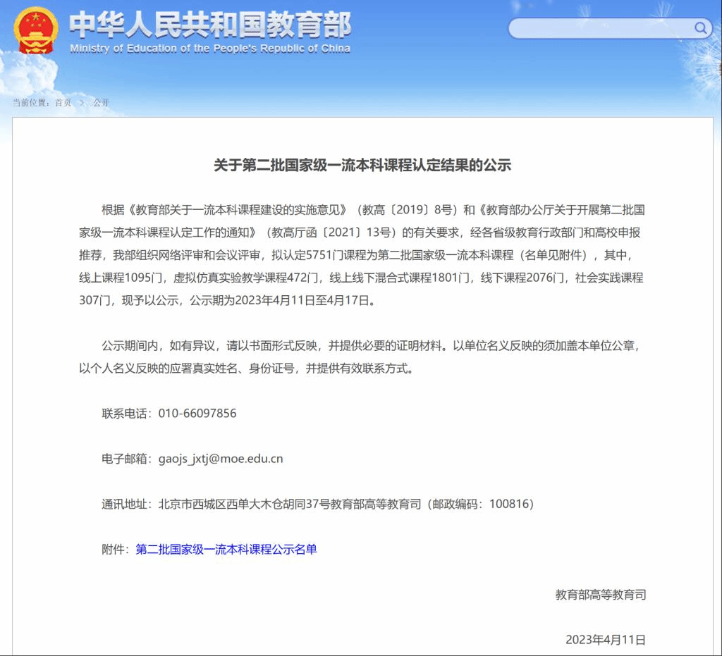 (通讯员 董晓峰)2023年4月11日,教育部发布了《关于第二批国家级一流本科课程认定结果的公示》,公司王红平教授主持的线上线下混合式课程《建筑工程计量与计价》入选第二批国家级一流本科课程,实现了太阳成tyc7111cc官网在一流本科课程建设方面的新突破。