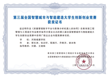 会议期间还举行了第三届全国智慧城市与智能建造老员工创新创业大赛颁奖典礼,大赛分主赛道和企业专题竞赛,共有180余支队伍参赛,公司取得了一个二等奖、两个单项奖的好成绩。