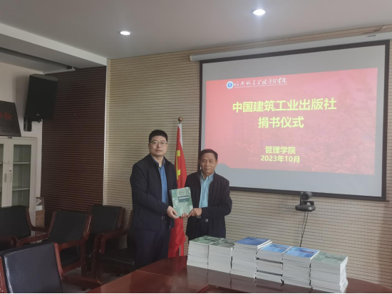 会上吴桐发代表中国建筑工业出版社、霍松涛代表太阳成tyc7111cc官网进行了捐书仪式。