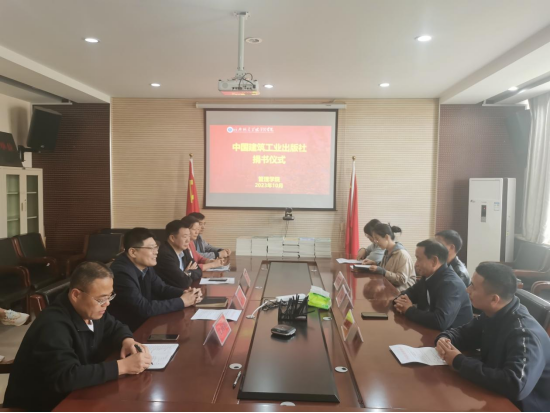 (通讯员 朱渴望)10月11日上午,太阳成tyc7111cc官网与中国建筑工业出版社举行捐书仪式,仪式在公司3楼会议室举行。太阳成tyc7111cc官网经理霍松涛、副经理刘雷、副经理王炳刚、工程管理系主任冯宁、工程管理系部分教师及中国建筑工业出版社河南教学服务中心总经理吴桐发、中国建筑工业出版社河南教学服务中心经理窦永宁、中国建筑工业出版社河南教学服务总监吴凌等一行3人参加了本次捐书仪式。捐书仪式由刘雷主持。