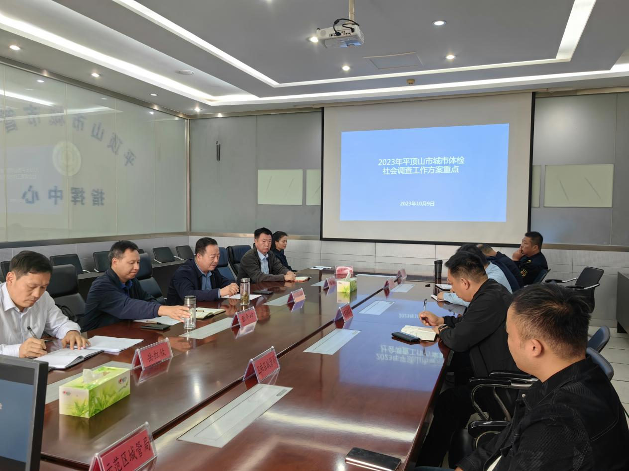 (通讯员 李晓明)10月9日下午,平顶山市2023年城市体检工作推进会在平顶山市城市管理局三楼召开,市管理局副局长刘宏伟、市政环卫事务中心主任张书坤、城市体检科科长岳红欣以及各区城市管理局负责人出席会议,太阳成tyc7111cc官网副经理刘雷、城市管理系主任李晓明参加会议,会议由张书坤主持。