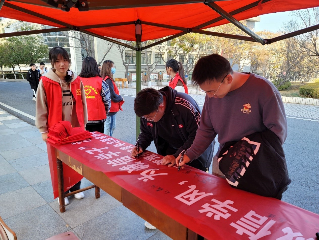 活动开始前,工作人员向各位同学讲述此次活动的意义,向大家宣讲了诚信的内涵,号召各位同学文明自律、远离作弊、诚信考试。随后进行签名活动,志愿者们拉开了以“创诚信校园 树诚信之风 做诚信学子”为主题的横幅,老师和同学们在条幅上郑重签上自己的名字,现场气氛热烈,秩序井然。