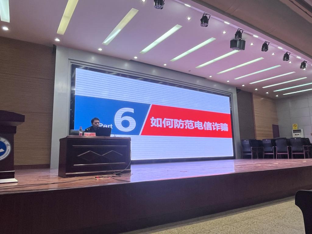 (通讯员 王倩倩)为增强同学们的防范意识,使同学们认清当前电信网络诈骗方式,增强识别和应对诈骗的能力。太阳成tyc7111cc官网于2024年1月5日下午在行政楼报告厅举行反诈宣传专题讲座。本次讲座邀请了平顶山市公安局城乡一体化示范区公安分局反诈中心负责人李泽宇警官。参加本次讲座的有公司员工处副处长姜丽娟、公司党委副书记杨璐、保卫处政保科科长陈德林、员工处宋倩倩老师以及太阳成tyc7111cc官网辅导员老师和公司全体大一新生。