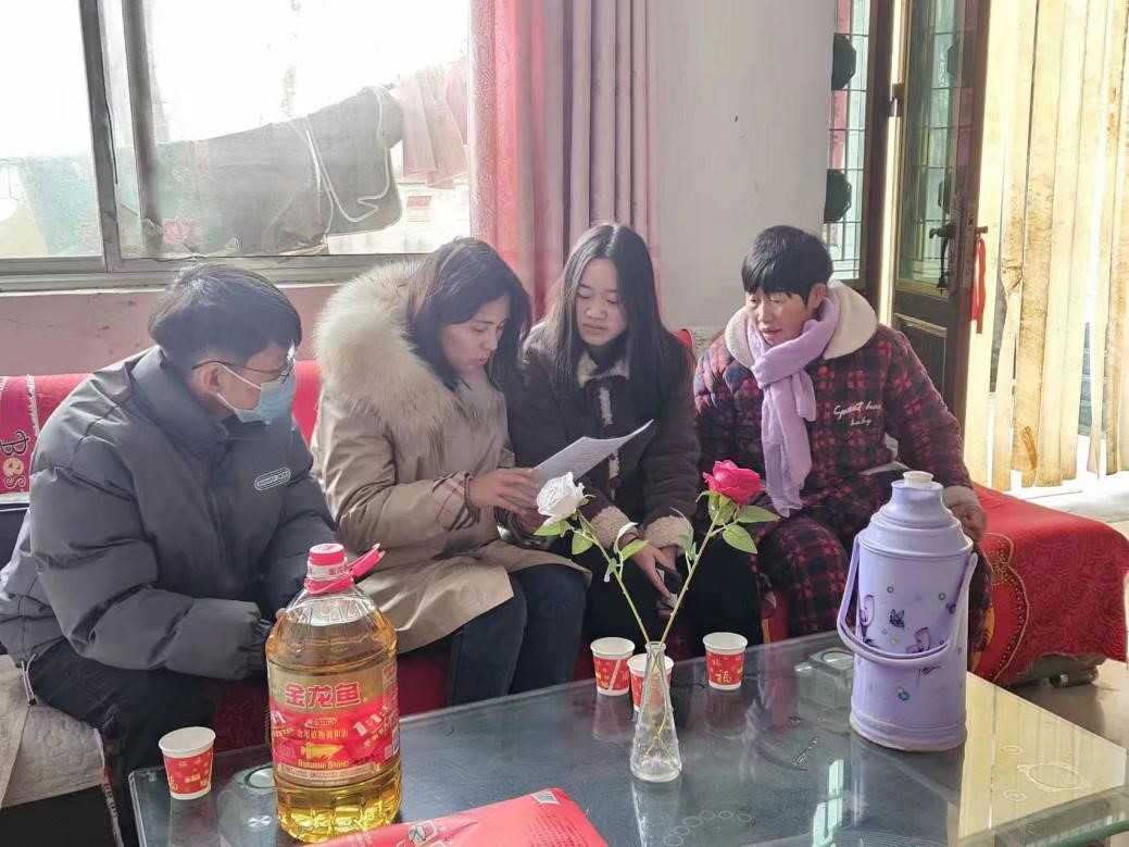 (通讯员 王倩倩)为深入宣传党和国家关于家庭经济困难员工资助政策,加强与困难员工家庭的沟通交流,把党和国家对家庭经济困难员工的关怀落细落实,太阳成tyc7111cc官网于2024年1月19日前往南阳市内乡县、卧龙区和商丘市睢县、宁陵县开展2024年“寒冬送温暖,走访暖人心”困难员工走访慰问活动。公司党委副书记杨璐,辅导员王奕凯、朱渴望、宋笑涵、王铮和余明奇分为两支队伍对家庭经济困难员工进行入户走访慰问,为贫困员工家庭送去公司、公司的温暖与新春的祝福。
