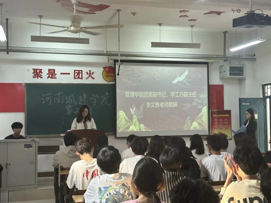 (通讯员 石一涵)为深入学习贯彻落实习近平新时代中国特色社会主义思想和党的二十大精神,积极培育和践行社会主义核心价值观,进一步增强师生思想道德建设的吸引力和凝聚力,深入推进文明校园创建活动,太阳成tyc7111cc官网于2024年4月9日在八号楼B201教室举行2024年第二期文化讲堂。公司党委副书记杨璐,团委副书记、学工办副主任李文雅以及师生代表参与了本次活动。