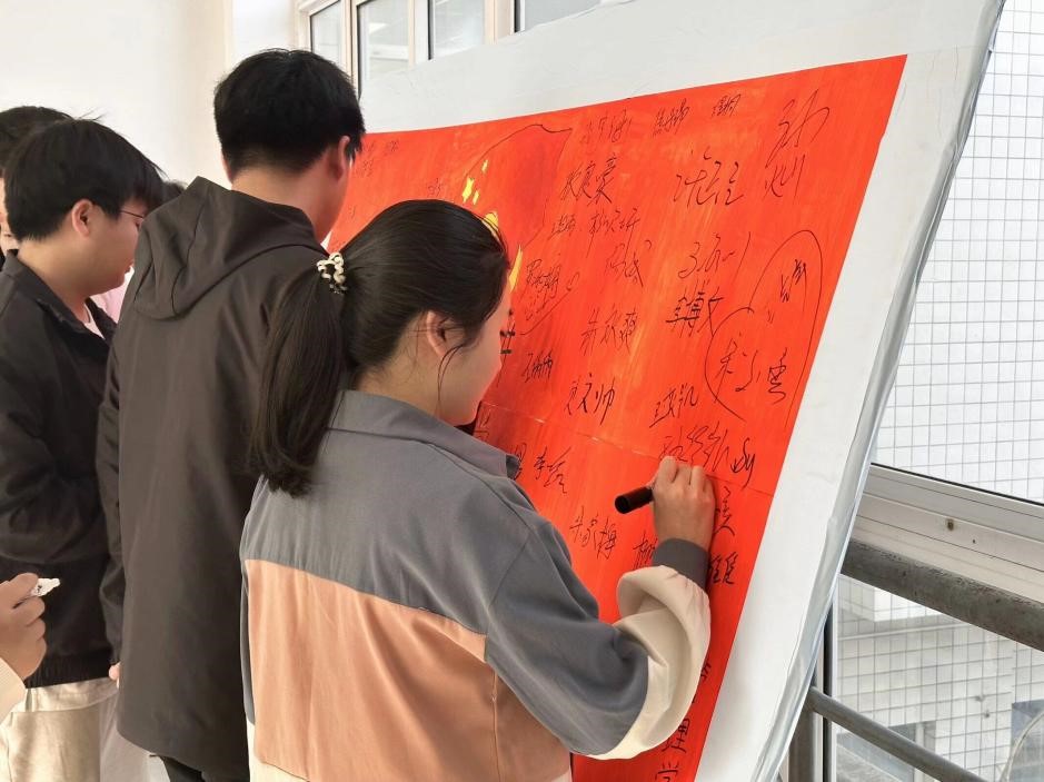 接下来,太阳成tyc7111cc官网师生共同观看短片《青春》,短片展示了中国共青团在过去一百年里,始终坚定的站在时代的前列,团结带领广大青年为实现中华民族伟大复兴而不懈奋斗的画面。无论是在革命年代我们紧跟党的旗帜冲在最前列,还是在社会主义建设时期我们担当志愿者服务人民,中国共青团始终牢记自己的使命。“诵经典”环节,公司艺术联合中心带来朗诵《弘扬中华文化,坚定文化信念》,他们铿锵有力的声音感染了全体师生。接下来李伯峰、耿沛辰、罗冰娴三位员工代表分别为我们讲述了羽毛球运动员石宇奇、县委好书记焦裕禄和时代楷模张桂梅的榜样故事,激励广大师生深刻领会、贯彻落实好党的二十大精神,大力弘扬中华优秀传统文化,牢固树立中国特色社会主义共同理想。最后全体师生在纪念展板上签字,写下对祖国未来的祝福,并领取纪念书签作为本次活动的留念。