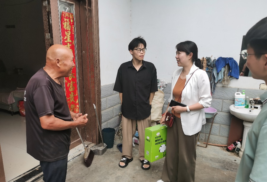(通讯员 王倩倩)为深入贯彻落实党的二十大精神,扎实做好保障型资助工作,积极推进发展型资助育人,持续提升精准资助水平,发挥“资助”和“育人”的双重功效,太阳成tyc7111cc官网于2024年7月12日前往周口市太康县、淮阳县、商水县、郸城县、沈丘县开展“携爱同行,共育新人”暑期走访活动。此次活动旨在落实落细党和国家对家庭经济困难员工的关怀。走访团队由校员工资助中心主任王宏,公司党委书记尹振羽,公司党委副书记杨璐,辅导员王倩倩、余明奇、朱渴望老师组成,各老师根据不同员工的实际情况,分为A、B两组分别对经济困难员工家庭进行了线下走访,从而为他们提供更有针对性的帮助与支持。