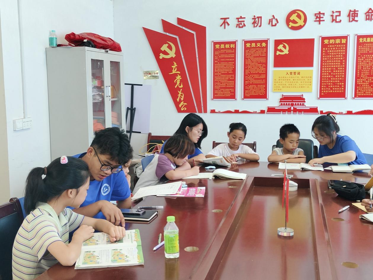 实践团成员辅导孩子作业