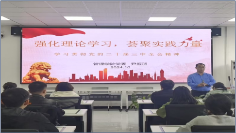 党的二十届三中全会是在以中国式现代化全面推进强国建设、民族复兴伟业的关键时期召开的一次十分重要的会议。尹振羽围绕党的二十届三中全会精神,从全面深化改革的重大理论推动中国式现代化的发展来进行讲解。在讲解中,尹振羽着重强调要结合学习贯彻全会精神,深刻领会习近平总书记关于全面深化改革一系列新思想、新观点、新论断的核心要义、丰富内涵和实践要求,并在实践中学以致用。