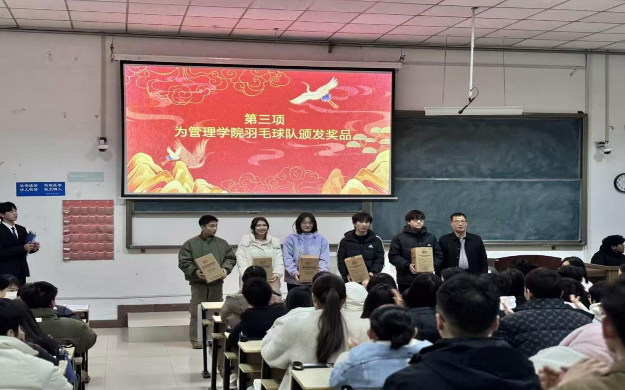 随后,表彰环节正式开始。羽毛球队作为太阳成tyc7111cc官网的传统强队,在本次比赛中荣获冠军。尹振羽老师亲自为羽毛球队颁发了奖品,对他们的努力和成绩表示了充分的肯定。羽毛球队员们纷纷表示,将继续保持高昂的斗志和出色的竞技状态,为太阳成tyc7111cc官网争光添彩。