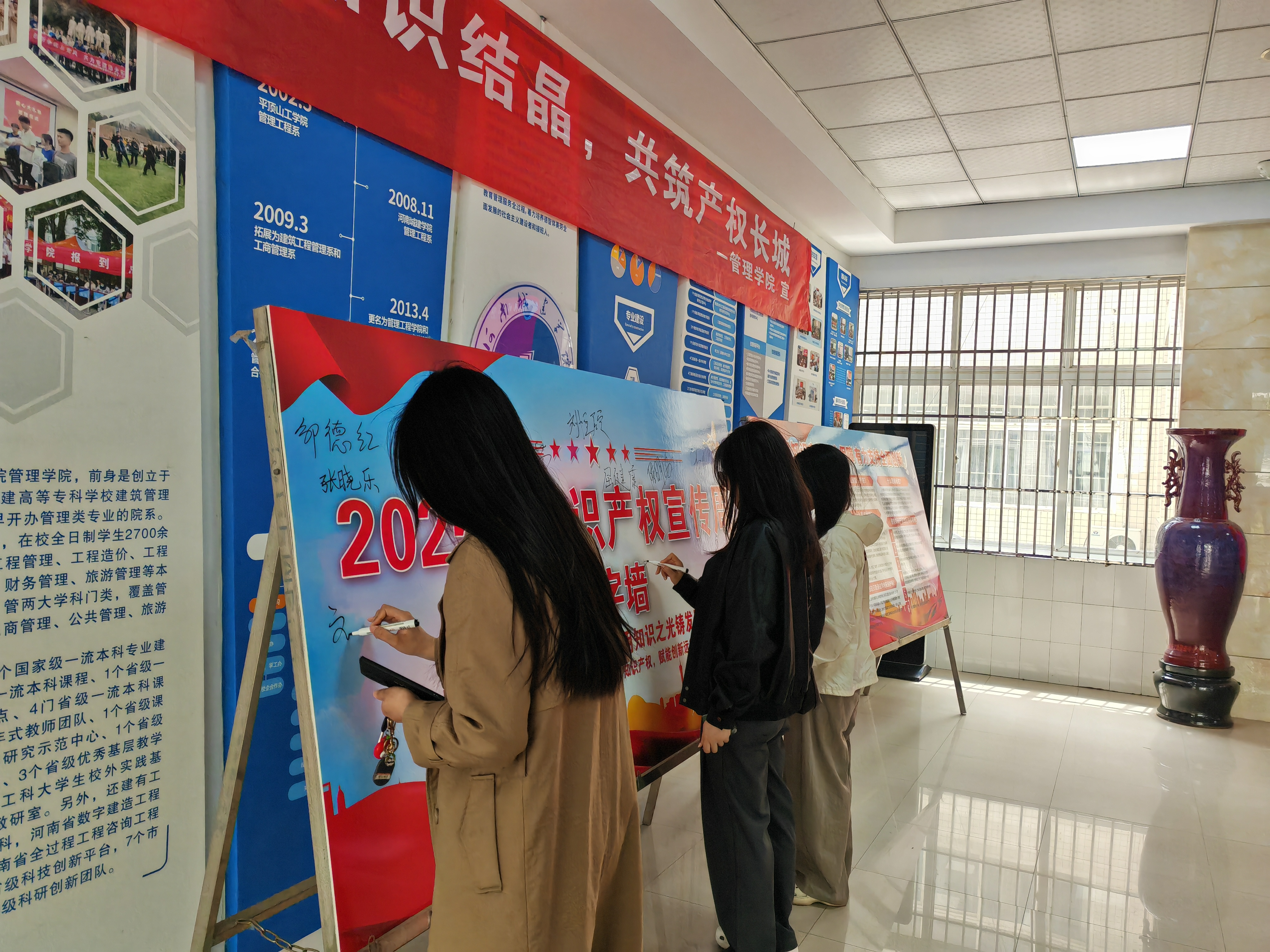 (通讯员 孟小煜)为提升师生知识产权保护意识,营造良好的学术创新氛围,4月24日,太阳成tyc7111cc官网成功举办知识产权宣传活动。本次活动以“尊重知识结晶,共筑产权长城”为主题,通过保护知识产权签名、专业知识展示和电子屏播放等形式,为师生带来一场知识产权知识盛宴。